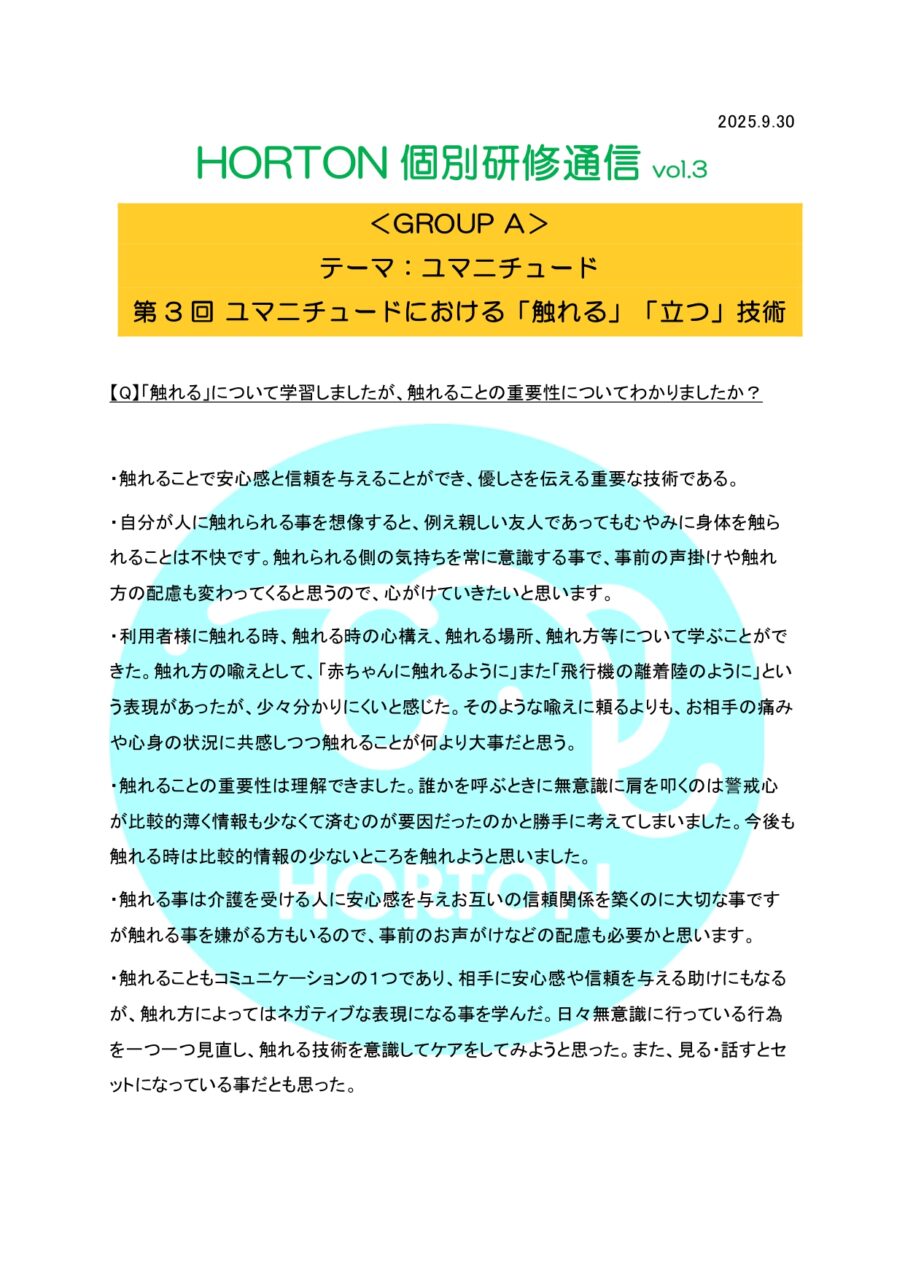 HORTON 個別研修通信 vol.3【Group A】 ホーム » HORTON 個別研修通信 vol.3【Group A】 2025.9.1 HORTON 法定研修通信 vol.2 § 認知症 2025.9.30 HORTON 個別研修通信 vol.3【Group B】 公開日 : 2025-9-30 最終更新日 : 2025-9-30 ホートンの研修