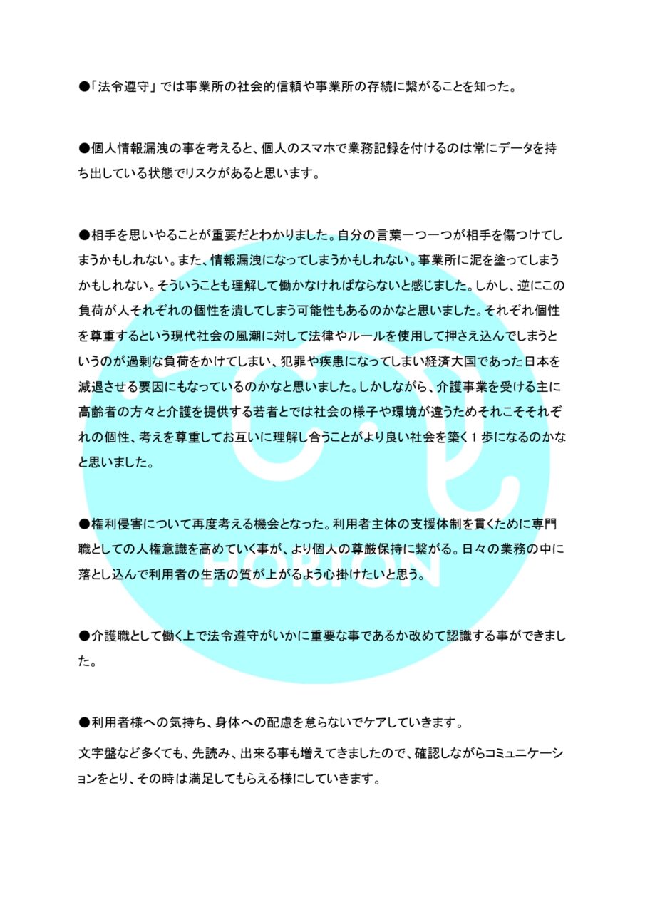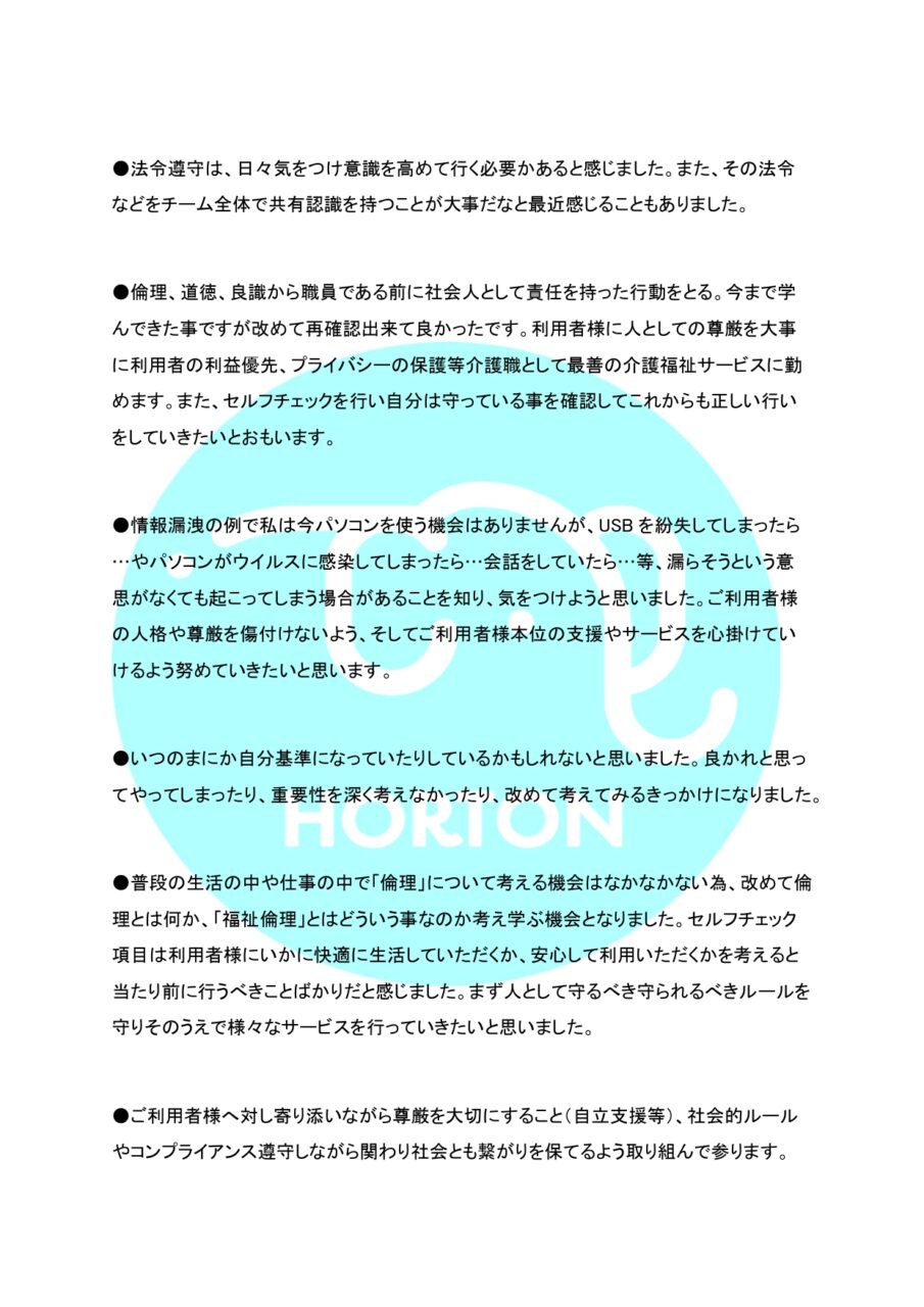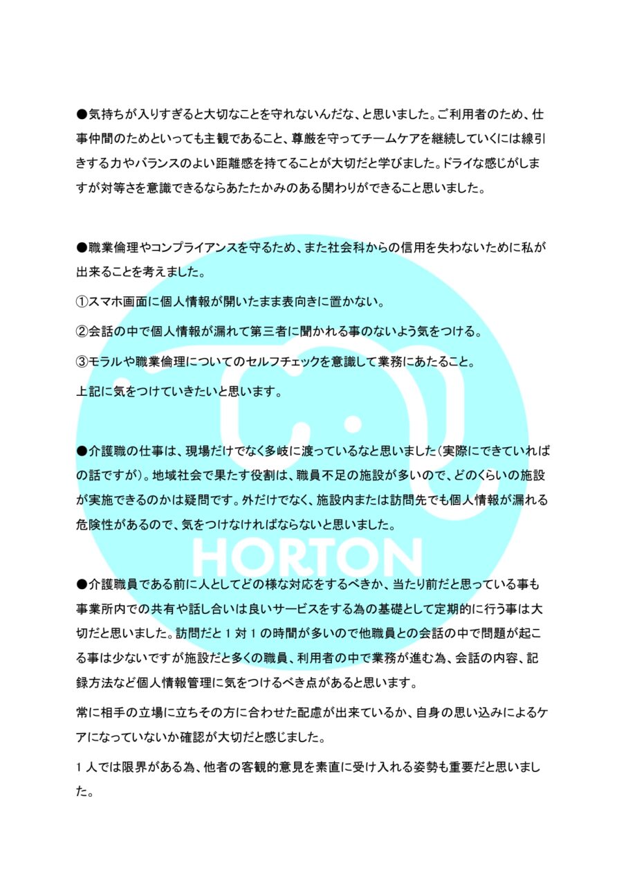 HORTON 法定研修通信 vol.3 § 法令遵守 ホーム » HORTON 法定研修通信 vol.3 § 法令遵守 2025.10.30 HORTON 法定研修通信 vol.3 § 個人情報保護 2025.11.30 HORTON 個別研修通信 vol.4【Group A】 公開日 : 2025-10-30 最終更新日 : 2025-11-7 ホートンの研修