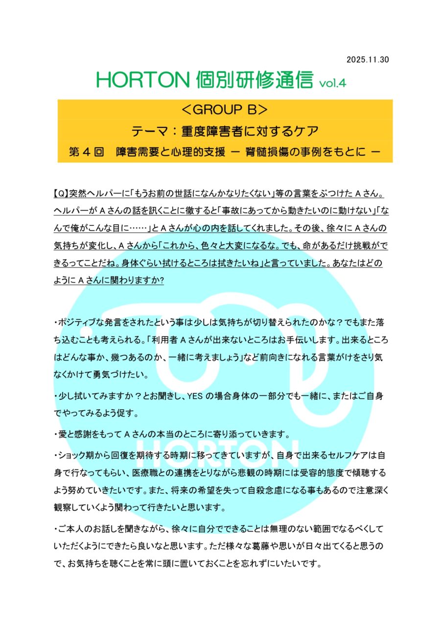 HORTON 個別研修通信 vol.4【Group B】 ホーム » HORTON 個別研修通信 vol.4【Group B】 2025.11.30 HORTON 個別研修通信 vol.4【Group C】 公開日 : 2025-11-30 最終更新日 : 2025-11-30 ホートンの研修
