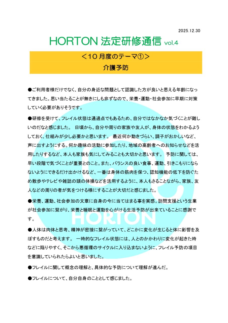 HORTON 法定研修通信 vol.4 § 介護予防 ホーム » HORTON 法定研修通信 vol.4 § 介護予防 2025.11.30 HORTON 個別研修通信 vol.4【Group B】 2025.12.31 HORTON 法定研修通信 vol.4 § 感染症 公開日 : 2025-12-31 最終更新日 : 2025-12-31 ホートンの研修