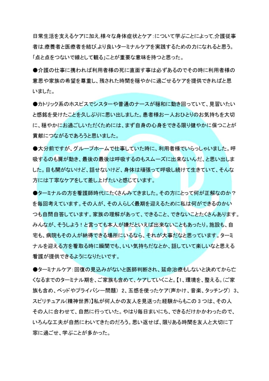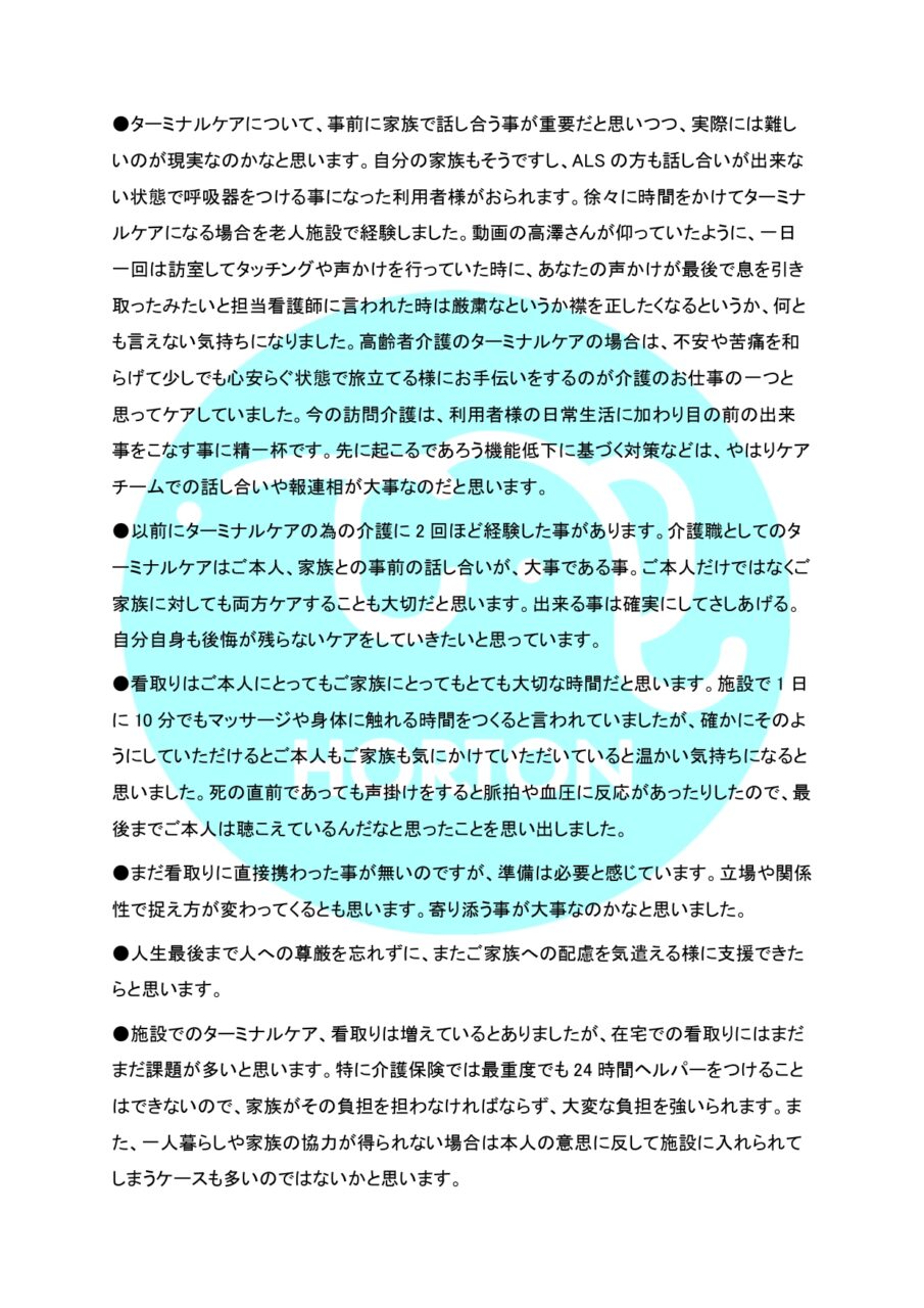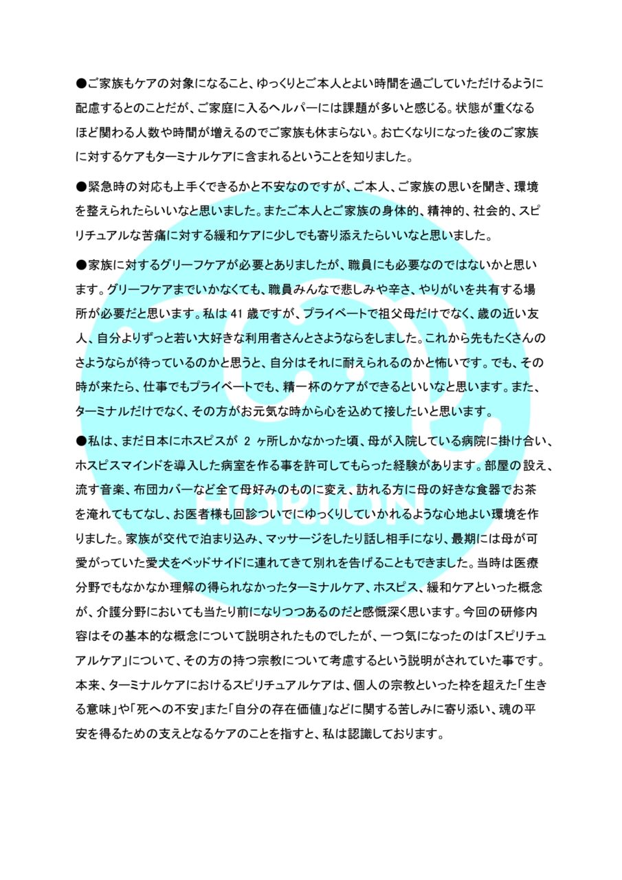HORTON 法定研修通信 vol.5 § ターミナルケア ホーム » HORTON 法定研修通信 vol.5 § ターミナルケア 2026.2.9 HORTON 個別研修通信 vol.5【Group C】 公開日 : 2026-2-28 最終更新日 : 2026-2-28 ホートンの研修